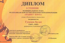 Кадеты- Гусамов Булат и Садыков Румиль - приняли участие на муниципальном этапе Республиканской научно -практической конференции "Подвигу жить", и по итогам были удостоены Дипломов I и II степени.Поздравляем ребят и их руководителя Руслана Ахатовича!