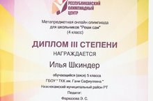 С целью обеспечения высокого качества работы с одарёнными детьми в муниципальных образованиях Республики Татарстан государственным автономным образовательным учреждением «Республиканский олимпиадный центр» Министерства образования и науки Республики Татарстан для школьников 1-6 классов была проведена метапредметная онлайн- олимпиада «Реши сам». Основной целью проведения данного мероприятия является создание условий для раскрытия интеллектуальных и творческих способностей участников. Кадеты - Илья Шкиндер, Булат Юсупов и Ярослав Мартыненко- приняли активное участие и показали высокие результаты! Молодцы, ребята! Мы гордимся вами и желаем дальнейших побед! Благодарим педагога Фарвазову Э.С. !!!