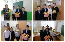 Бүген егетләр укытучы, җыештыручы, тәмле ашлар белән сөендереп торучы пешекче апаларын якынлашып килүче бәйрәм белән котлап, кулдан ясалган чәчәкләр тапшырдылар.