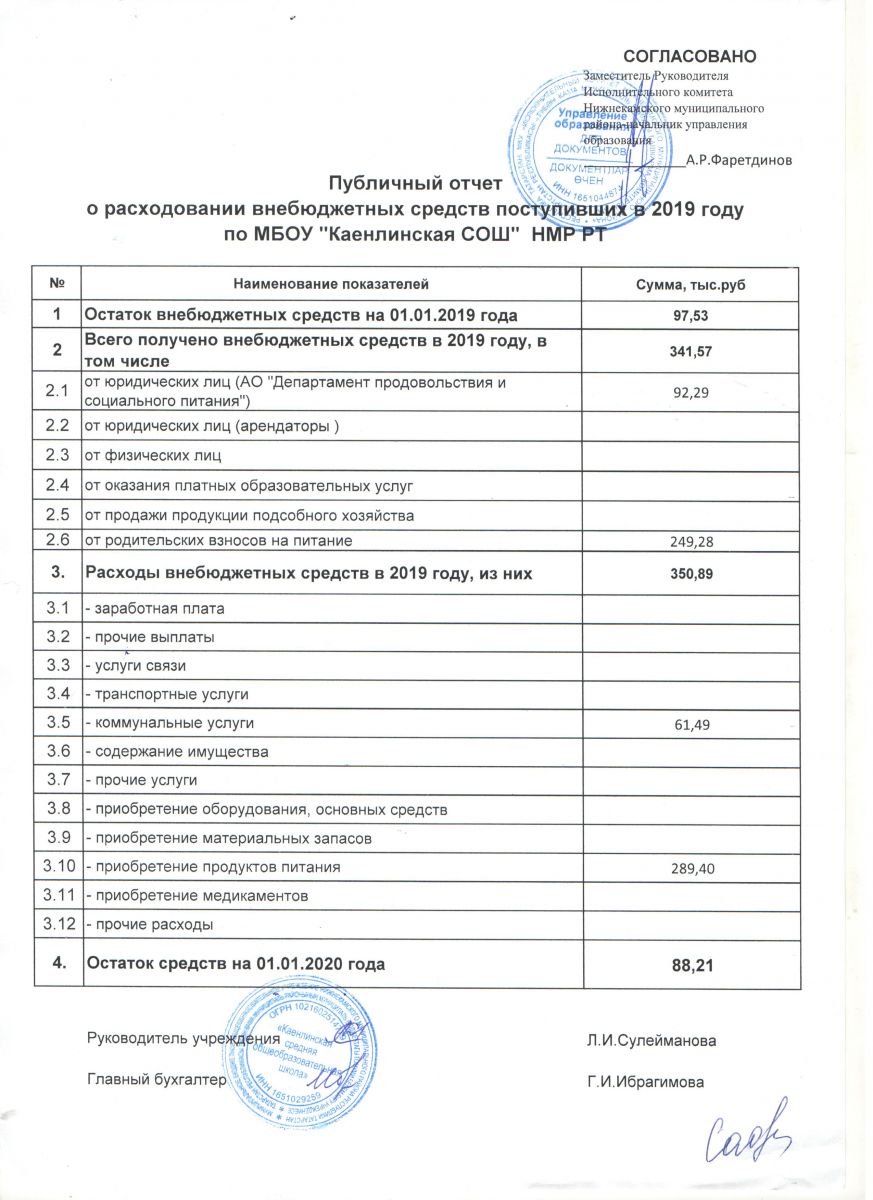 Публичный отчёт о расходовании внебюджетных средств поступивших в 2019 году