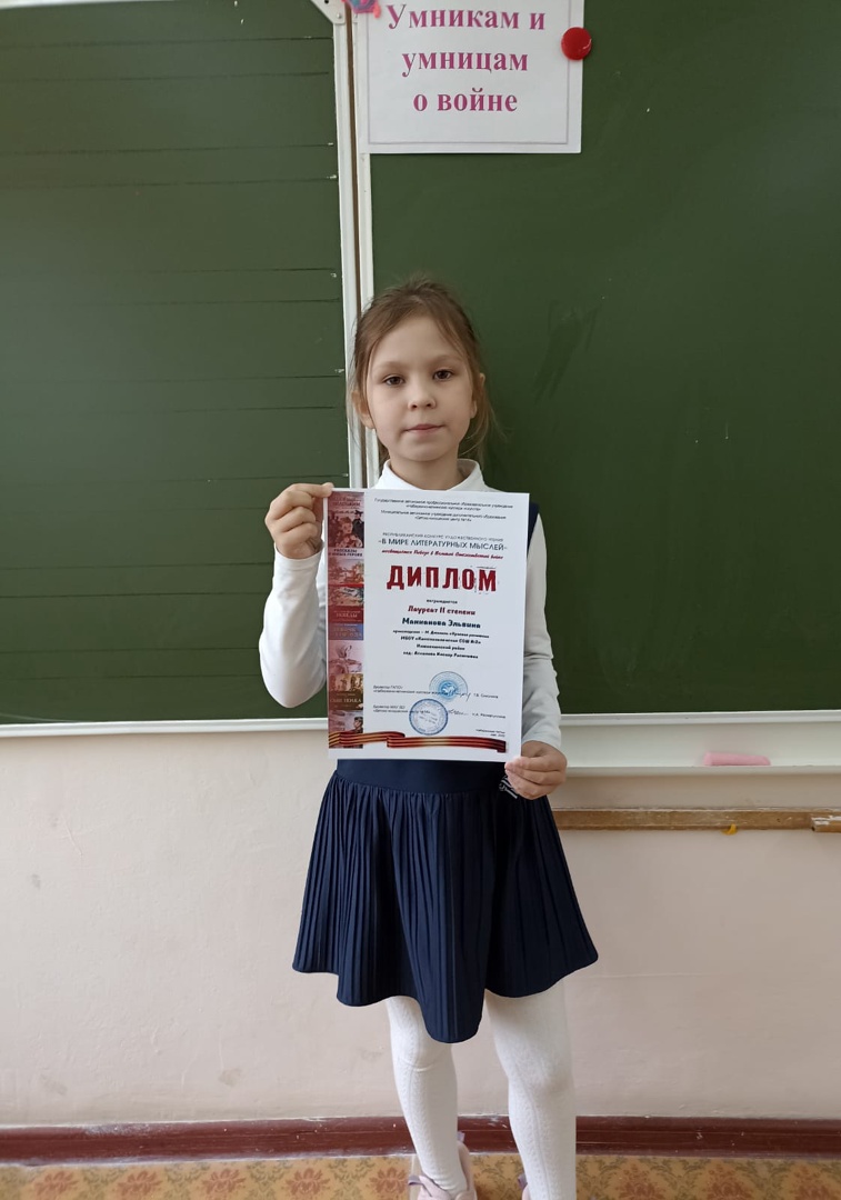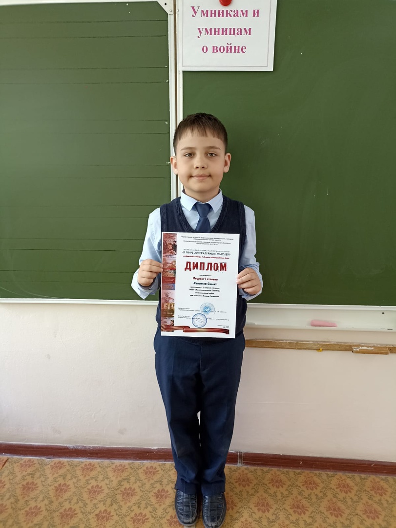 Поздравляем учеников 1 б класса (Классный руководитель: Агмалова И.Р.) с заслуженными наградами за Республиканский конкурс художественного чтения «В мире литературных мыслей», посвященного Победе в Великой Отечественной войне. Хакимов Самат – 1 место, Низамов Ренас – 2 место, Маннанова Эльвина- 2 место.