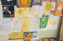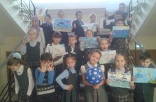 Сегодня у начальных классов - желтый день. Ребята участвовали в конкурсе рисунков "Солнечный лучик или зайчик", а так же про элементы одежды желтого цвета не забыли!