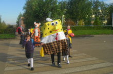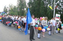 День города 24.08.2015 22 августа наша школа приняла участие в праздновании Дня города. Учителя вышли на шествие со своими учениками. Колонна получилась яркой и заметной.На празднике первоклассникам вручили портфели.