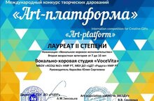 Поздравляем вокально-хоровую студию "VoseVita" с победой в Международном конкурсе творческих дарований "Art-платформа" в номинации "Вокально-хоровое исполнительство"!!! Руководитель Карасёва Юлия Сергеевна!!! Молодцы!!! Желаем дальнейших творческих успехов и свершений!!!