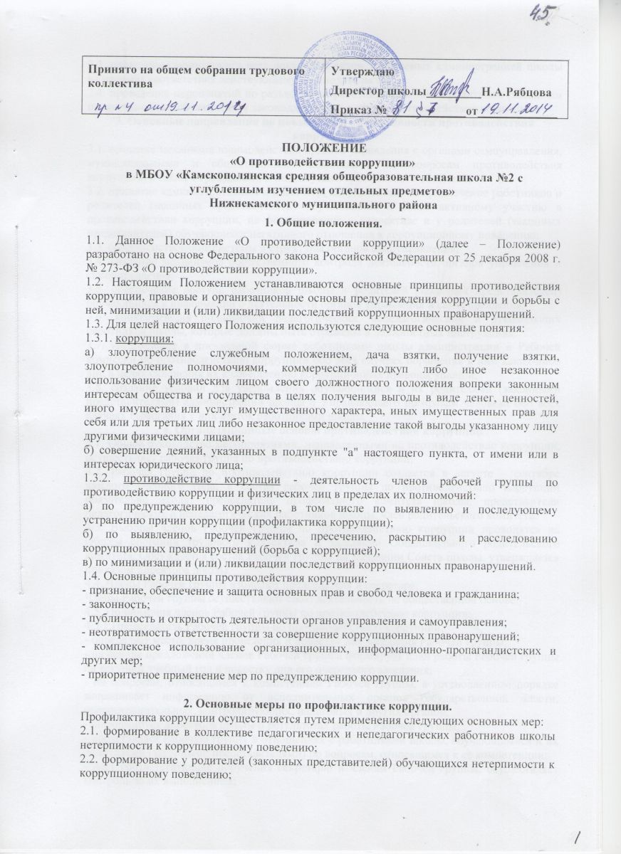 муниципальное бюджетное общеобразовательное учреждение «Камскополянская средняя общеобразовательная школа №2 с углубленным изучением отдельных предметов» Нижнекамского муниципального района РТ