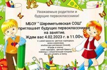 Информация для родителей! С 04 февраля в МБОУ "Шереметьевская СОШ" начинаются занятия для будущих первоклассников. 16.01.2023