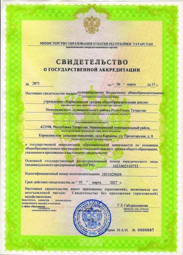 Муниципальное бюджетное общеобразовательное учреждение «Кармалинская средняя общеобразовательная школа» Нижнекамского муниципального района Республики Татарстан\Татарстан Республикасы Түбән Кама муниципаль районының «Кармалы урта гомуми белем бирү мәктәбе» муниципаль бюджет гомуми белем бирү учреждениесе