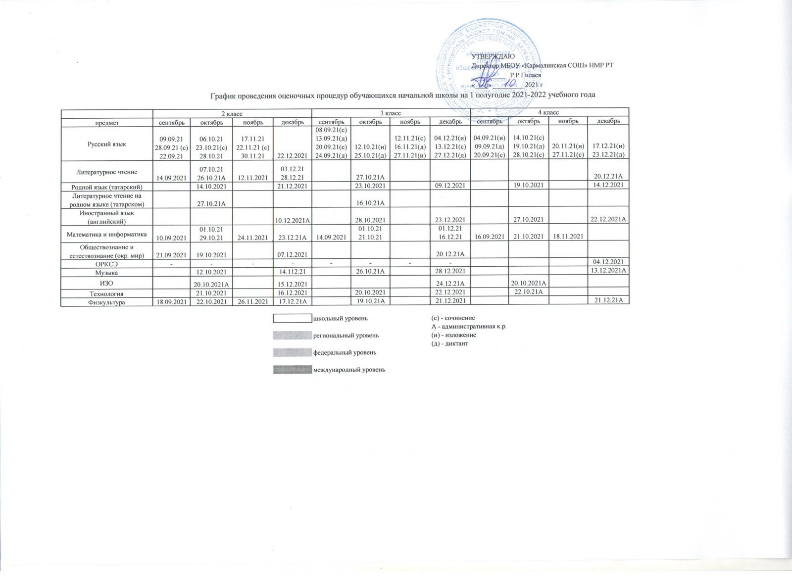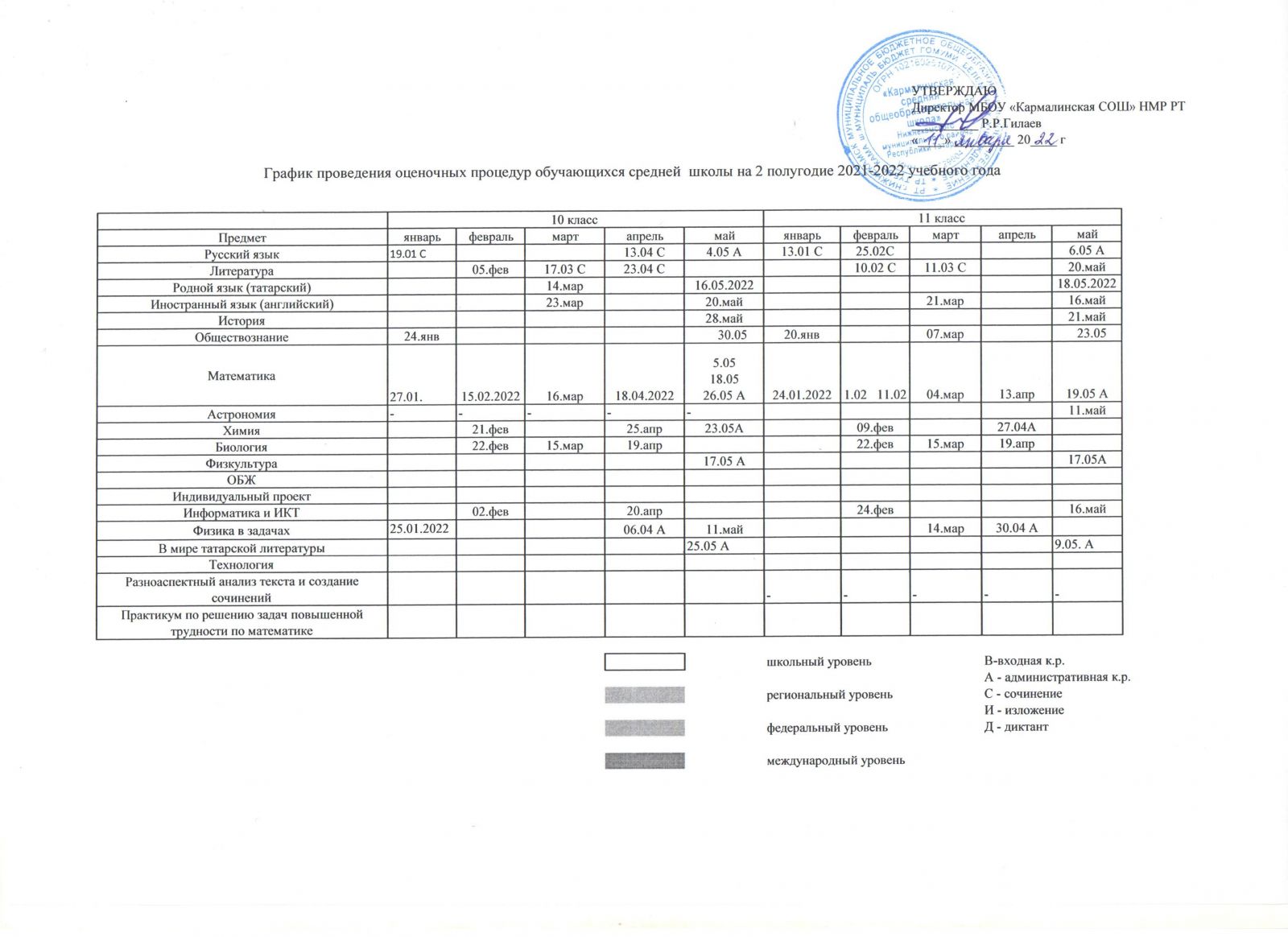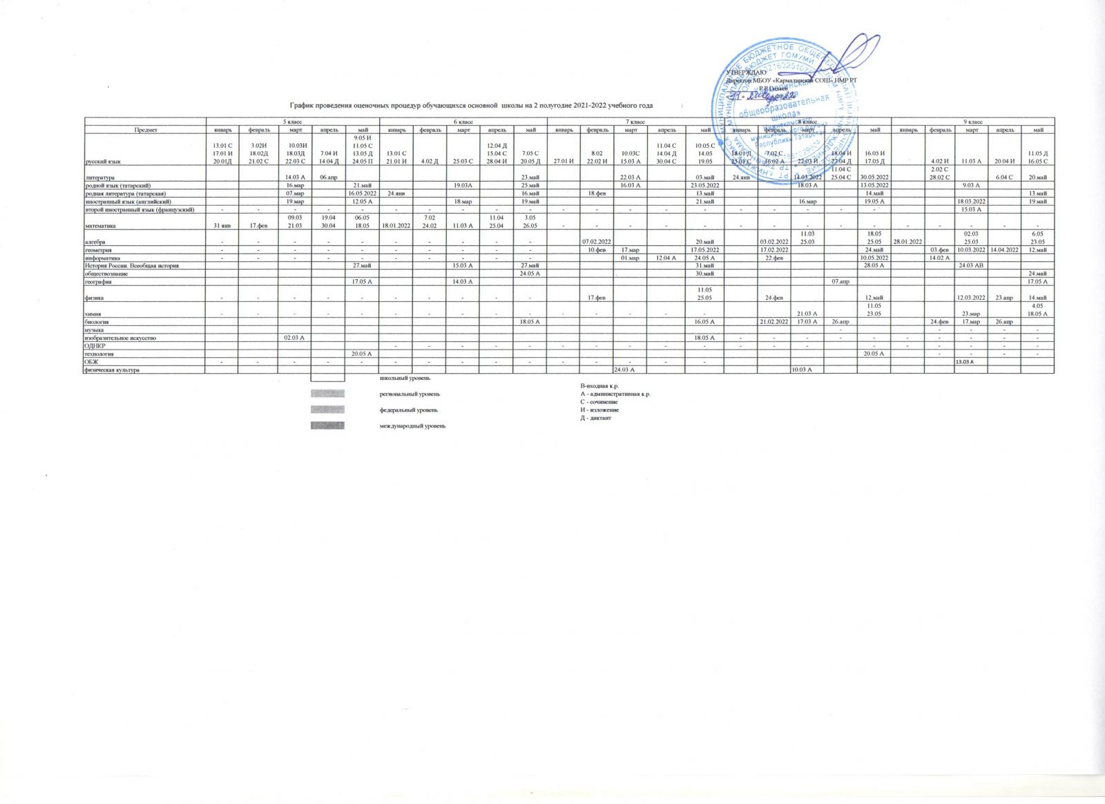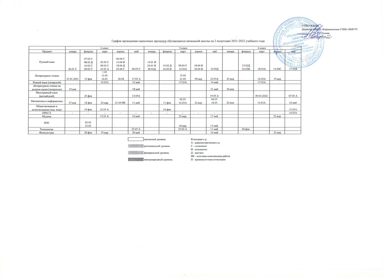 График оценочных работ\Бәяләү эшләре графигы