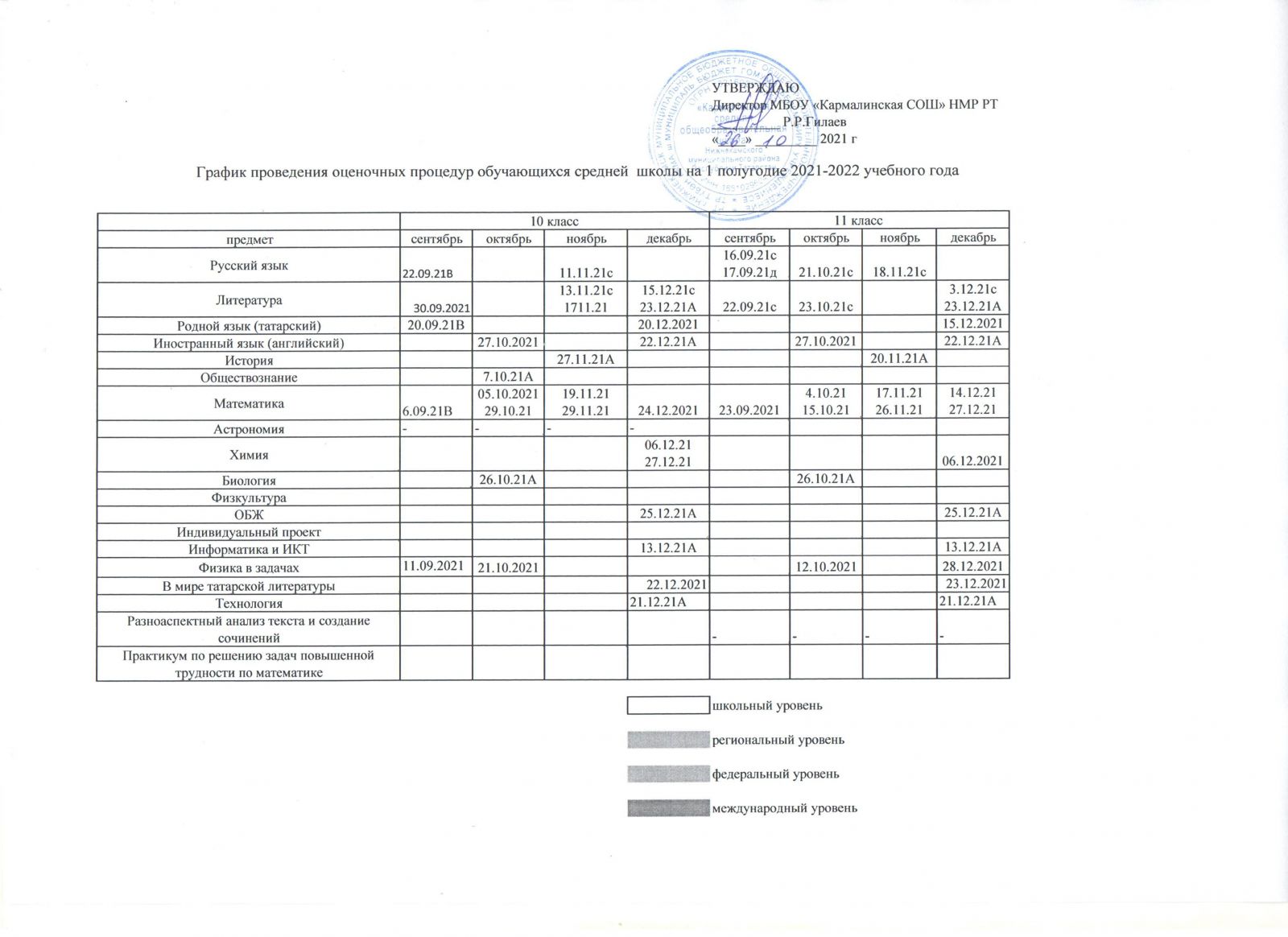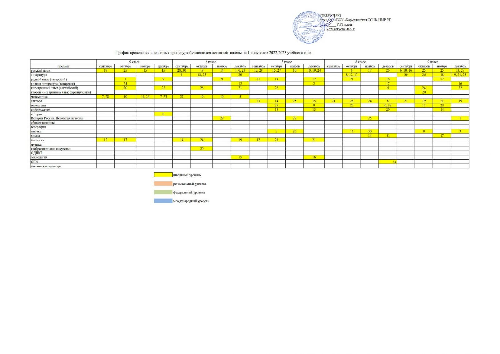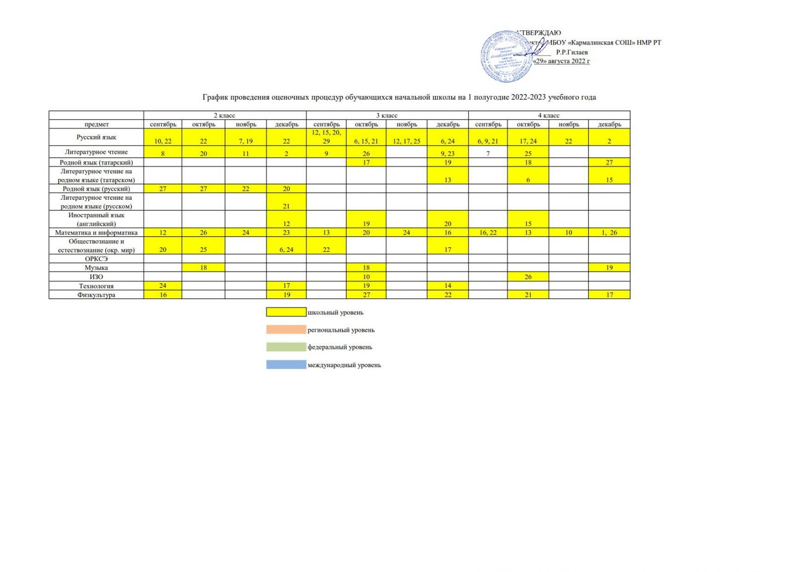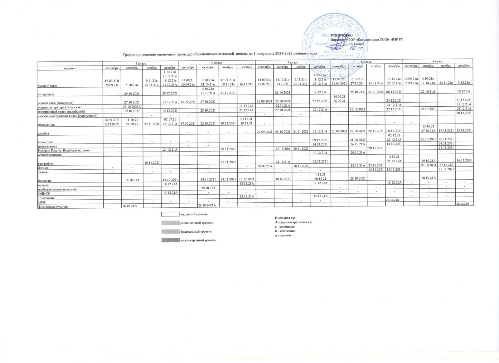 График оценочных работ\Бәяләү эшләре графигы