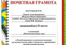 Участие в Республиканском студенческом конкурсе исследовательских работ и проектов с применением математических методов 01.03.2023