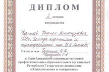 19 декабря 2018 года на базе ГАПОУ «Нижнекамский политехнический колледж» прошла республиканская олимпиада для студентов ПОО РТ по дисциплине «Электротехника и электроника» Корнилов Кирилл гр.121 (руководители Бусыгина И.М., Городнова О. А.) занял 2 место.