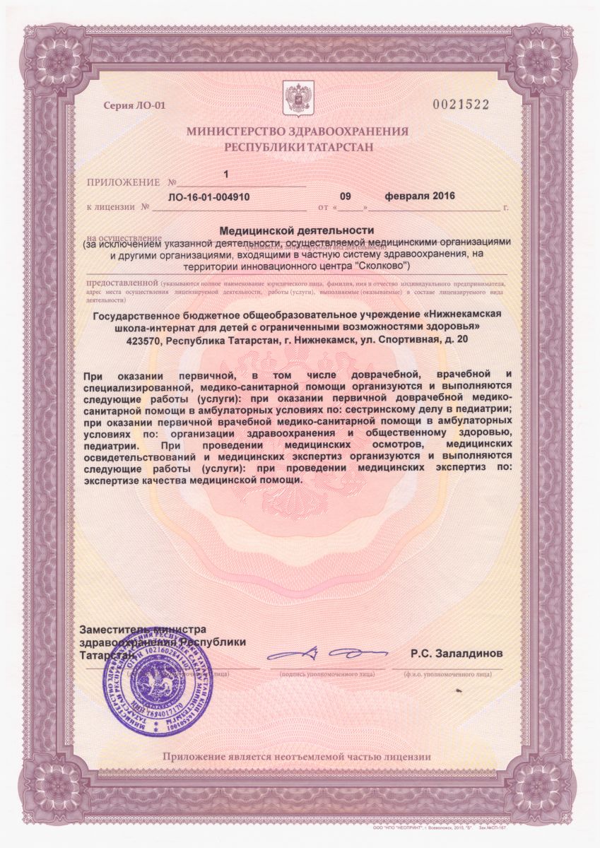 Лицензия на осуществление медицинской деятельности, приложение к лицензии