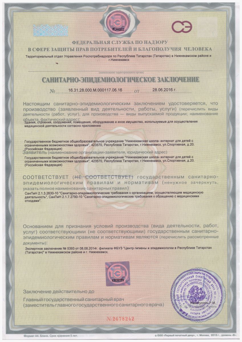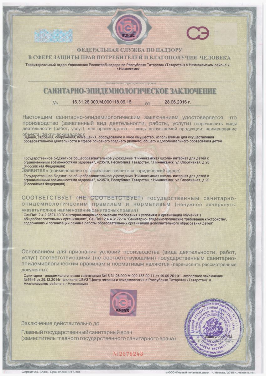 Санитарно-эпидемиологическое заключение 1