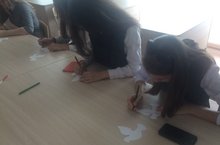 В каждом классе был проведён открытый урок на тему пагубного влияния экстремизма и терроризма в современном мире. В конце урока классные руководители раздали учащимся стикеры в виде "голубя мира", на которых они написали свое мнение по волнующему вопросу "Что для меня наш мир?" После чего данные стикеры закреплялись на плакате.