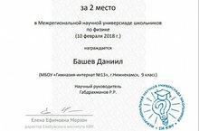 Ученик 9б класса Башев Даниил занял II место в межрегиональной научной универсиаде школьников по физике! Поздравляем! Молодец! Выражаем благодарность Ренату Раухатовичу за подготовку призёра!