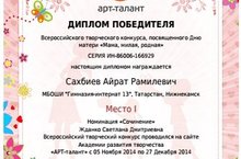 Подведены итоги всероссийских творческих конкурсов «АРТ-талант», «Талантоха», «Я – энциклопедия», «Шаг в вечность» в номинациях «Актёрское мастерство», «Конкурс малой прозы», «Декоративно-прикладное искусство», «Журналистика», «Сочинение».
