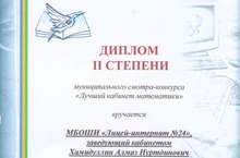 В рамках Года математики в Нижнекамском муниципальном районе прошел смотр-конкурс «Лучший кабинет математики». Кабинет математики № 203 занял 2 место.