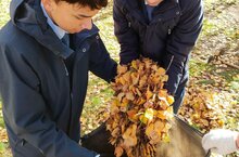 Сегодня ученики 8-х классов вместе со своим воспитателем поучаствовали в сборе листьев в городском парке «Семья».