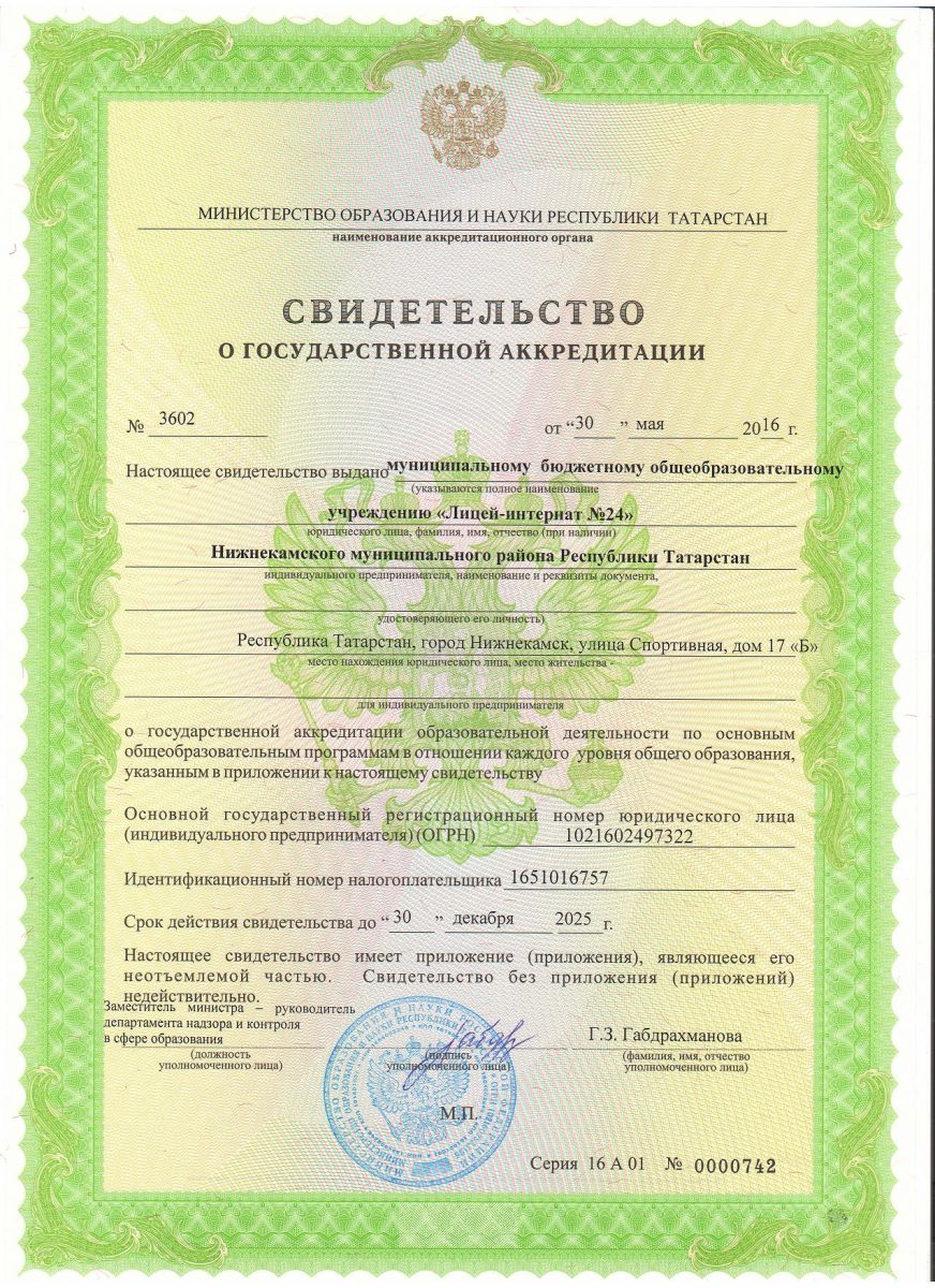 Муниципальное бюджетное общеобразовательное учреждение «Лицей-интернат №24» Нижнекамского муниципального района Республики Татарстан / Татарстан Республикасы Түбән Кама муниципаль районының «24 нче лицей-интернат» муниципаль бюджет гомуми белем бирү учреждениесе