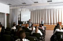 27 января с беседой по профориентации, перед 10-11 классами выступили представители КФУ (г. Елабуга) - заместитель заведующего отделения иностранного языка Трофимова Людмила Владимировна и старший преподаватель кафедры немецкой филологии Барова Алена Геннадьевна.