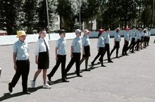 9 июня. Пришкольный лагерь. Юнармейский отряд 5ю классов. Все идет по плану. Строевая, физическая подготовка. Обед по расписанию.
