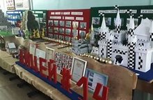 На первом этаже начального блока организована выставка рисунков "В шахматном королевстве". -