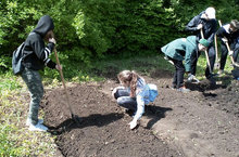 Ребята из трудовых отрядов продолжают работу по облагораживанию и озеленению территории лицея.