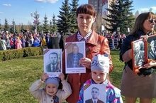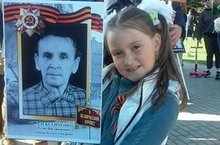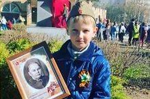 Ученица 2б класса Урманчева Ангелина на акции "Бессмертный полк".