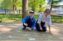 Математику можно изучать не только в классе у школьной доски, но и на улице! Достаточно только мела, асфальта и хорошей погоды, чтобы устроить познавательный урок во дворе школы. Сегодня ребята из 5ю класса поняли, что рисовать мелками можно не только солнышко и домик, но и буквы, и цифры, и даже целые примеры с задачками.
