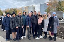 Школьники вышли на улицу Химиков, чтобы поддержать и проводить мобилизованных земляков. Ребята, выстроившись в ряд у дороги, приветствовали нижнекамцев, которые отправились на Украину для участия в спецоперации. -