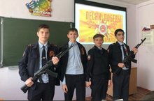 Выпускники 9а класса исполнили всемирно известную песню "Катюша", тем самым отдали дань памяти героям войны и труда, которые на фронте и в тылу приближали победу советского народа в борьбе с фашистской Германией.