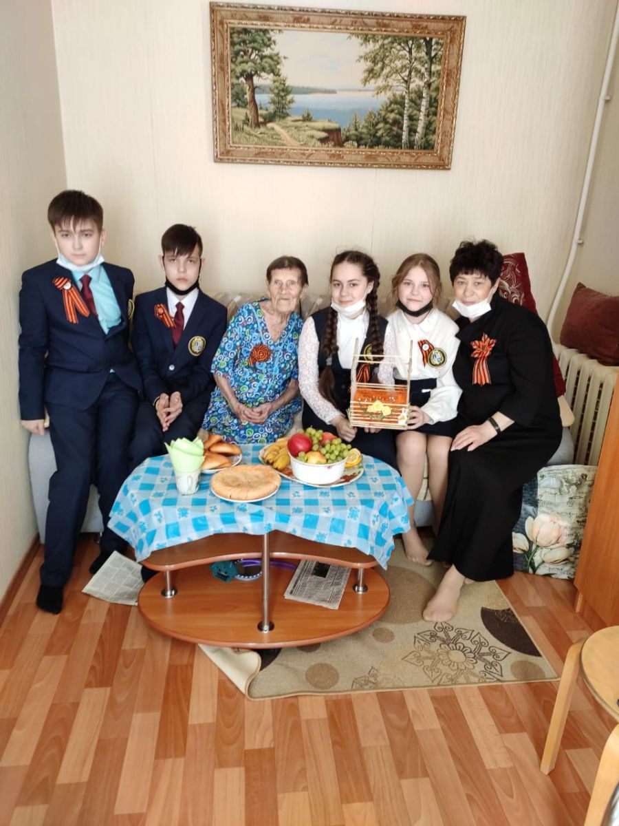 9 Май бәйрәме алдыннан безнең лицей волонтерлары Бөек Ватан сугышы ветераны Зарипова Мәдинә Хөснетдин кызын бәйрәм белән котладылар һәм азык-төлек җыелмасы тапшырдылар.