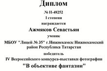 Диплом I степени - Ажмяков Севастьян;