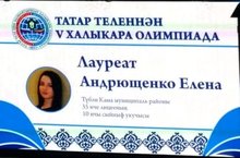 Поздравляем ученицу 10 А класса Андрющенко Елену, лауреата V Международной олимпиады по татарскому языку, которая проходила с 18 по22 апреля 2017 года в Казанском федеральном университете .