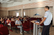 Месячник ДДТТ "Внимание - дети!" 12.09.2014 12 сентября в рамках месячника по профилактике ДДТТ "Внимание-дети!" в актовом зале лицея прошли линейки для учащихся 5-11 классов. На линейке для учащихся 5-6 классов выступил инспектор ГИББД Викулов М.В. с профилактической беседой о соблюдении правил дорожного движения и о последствиях их нарушений.