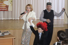 11.04.2014- Встреча с татарским юмористом, поэтом А.Н.Хамзиным, вокалисткой Алией Хамзиной и детским поэтом А.М.Гимадиевым 12.04.2014 Алмаз Хамзин, Алия Хамзина һәм Алмаз Гимадиев белән очрашуга 5,6,7 сыйныф укучылары чакырылган иде. Укучылар бу очрашудан бик канәгать калдылар. Казан кунаклары бүләк итеп алып килгән “Сабантуй” журналын алар бик ошаттылар.