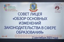 2 сентября 2023 года в актовом зале лицея состоялось первое заседание Совета лицея в новом учебном году, на котором присутствовали председатели родительских комитетов классов и администрация лицея. Повестка заседания Совета лицея была насыщенной: обзор основных изменений законодательства в сфере образования, анализ достижений учащихся и педагогов за прошлый учебный год, рейтинг классов по итогам года, режим занятий обучающихся, согласование плана работы лицея, ГКУГ, учебного плана и особенности ФГОС в 5-10-х классах, организация питания и его стоимость с 1 сентября 2023 года, бесплатное питание, отчёт о расходовании внебюджетных средств, предлагаемые бюджетные и внебюджетные курсы, подготовка ко Дню лицея и семейная лига «Что? Где? Когда?» Благодарим наших родителей за тесное сотрудничество в деле воспитания молодого поколения и надеемся на дальнейшее плодотворное сотрудничество.