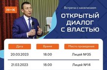 20 марта 2023 г. в 18:00 часов в актовом зале лицея N35 состоится "Открытый разговор с властью" с участием Мэра г. Нижнекамска, Главы НМР, депутата Шинниковского избирательного округа Муллина Рамиля Хамзовича.