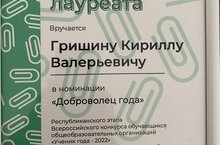 5 октября в Казани подвели итоги Республиканского этапа Всероссийского конкурса «Ученик года - 2022». Поздравляем ученика 10в класса Гришина Кирилла - лауреата в номинации «Доброволец года - 2022». Кирилл является активным членом лицейского волонтёрского штаба «Искра надежды» и ІТ-специалистом, координатором единой информационной системы «ДОБРО.РФ» HMP. Желаем Кириллу успехов в благом деле!