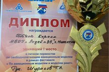 18 сентября команда юношей лицея приняла участие в фестивале НМР РТ «По авиационным моделям и моделям ракет» и заняла I место в номинации «Модели ракет» (руководитель делегации Шураков Г.А.). В личном первенстве по свободным авиационным моделям Комиссаров Дмитрий и Виноградов Герман награждены дипломом и кубком за III место, Бобков Кирилл - I место. Молодцы! Гордимся нашими будущими инженерами!