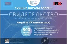 Лицей N35 - в числе лучших 300 школ России 29.08.2022