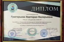 От всей души поздравляем ученицу 11 б класса Григорьеву Викторию - лауреата Международной молодежной научной конференции «Нефть и газ -2022», которая проходила с 25 по 29 апреля 2022 года в г. Москве. Виктория достойно представила свою исследовательскую работу «Сезонное исследование качества воды родников города Нижнекамска и Нижнекамского района» в секции «Школьное научное общество». Данная победа даёт право на дополнительные +7 баллов к результатам ЕГЭ при поступлении в РГУ нефти и газа (НИУ) имени И.М. Губкина.