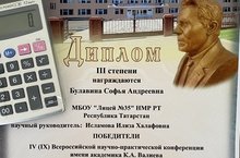 Поздравляем ученицу 8б класса Булавину Софью (рук. Исламова И.Х.) с победой (III место) в IV (IX) Всероссийской научно-практической конференции имени академика К.А. Валиева, которая проходила в г. Мамадыше. Желаем дальнейших успехов в научно-исследовательской и творческой деятельности.
