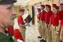 Каждому юнармейцу в этот день выпала честь принести торжественную клятву: всегда быть верным своему Отечеству, соблюдать устав «ЮНАРМИИ», следовать традициям доблести, отваги и товарищеской взаимовыручки, защищать слабых, стремиться к победам в учебе и спорте, чтить память героев. В знак принятия в ряды Движения каждый участник получил удостоверение и нагрудный значок, которые им вручили наставники-юнармейцы 10-11-х классов.