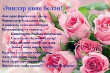 Кадерле Әниләр! Сезне чын күңелдән "Әниләр көне белән"тәбриклибез! Сезгә ныклы сәламәтлек, тормышыгызда hәм эшегездә зур уңышлар,гаилә бәхете телибез!Балаларыгыз сезне hәрчак куандырып-шатландырып торсыннар! Сабыйларыгыз турында яхшы сүзләр генә ишетергә язсын сезгә,чөнки АНА өчен моннан да зуррак бәхет юктыр.