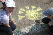 Погода выдалась в этот день на славу и поэтому молодые студенты - активисты решили провести это время с учениками школы на свежем воздухе: они вместе играли, загадывали загадки, рисовали отгадки цветными мелками на асфальте. Много нового и интересного о природе и природных явлениях узнали маленькие воспитанники школы и дети – инвалиды, приехавшие на реабилитацию. Весело и с пользой прошел этот день не только у учеников школы, но и у волонтеров.