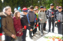 5 мая для учащихся школы прошла торжественная линейка - митинг с возложением цветов к памятнику погибшим солдатам в п. Красный Ключ.