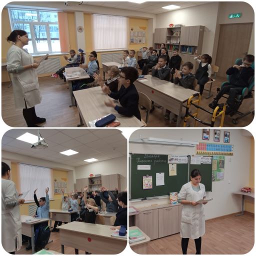 28 ноября медсестрой школьного отделения Мамыкиной Гузель Раисовной была проведена беседа с 2,3 и 4 классами на тему "Правильное питание". В рамках беседы разобрали принципы здорового питания,что такое витамины и их содержание в разных пищевых продуктах,какие продукты вредны для нашего здоровья.