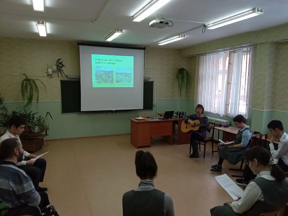 В рамках месячника Родного языка и литературы в 9а классе прошла встреча с поэтом, автором - исполнителем, нашей землячкой Зелениной И. П.