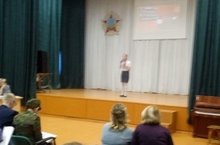 Петрова Милена, ученица 7 класса приняла участие в муниципальном конкурсе чтецов " Солдатами не рождаются", посвященном 100-летию Российской Армии. Мероприятие проходило в СОШ № 29.